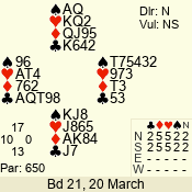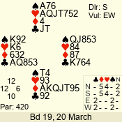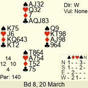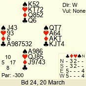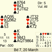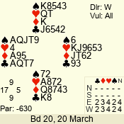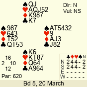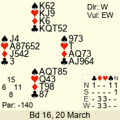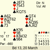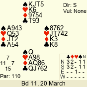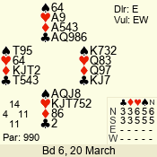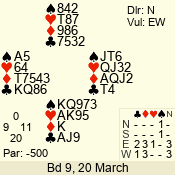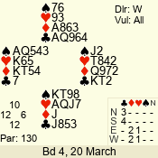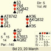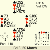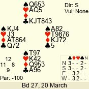 | 3 NT | S | +1 | 430 | 6 | 03 - 05 | 8 | 3 |