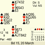 | 3 NT | S | +2 | 460 | 9 | 04 - 06 | 8 | 4 |