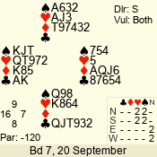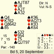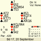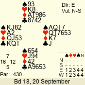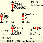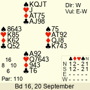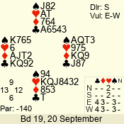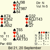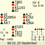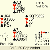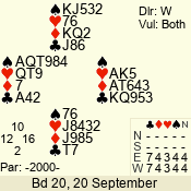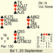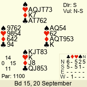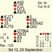 | 3 NT | W | +1 | -430 | A | 09 - 02 | 12 | 9 |