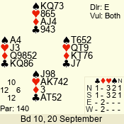 | 3 NT | E | +1 | -630 | 2 | 05 - 10 | 6 | 5 |