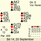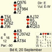 | 3 NT | E | +1 | -630 | 2 | 02 - 04 | 9 | 2 |