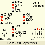 | 3 NT | W | +1 | -430 | Q | 09 - 02 | 12 | 9 |