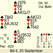 | 3 NT | W | +2 | -660 | 3 | 06 - 03 | 4 | 6 |