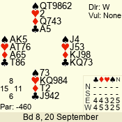 | 3 NT | W | +2 | -460 | 8 | 02 - 10 | 3 | 2 |
