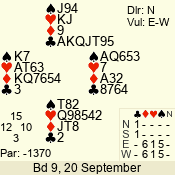 | 3 NT | W | +1 | -630 | A | 09 - 03 | 7 | 9 |
