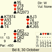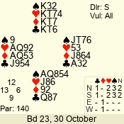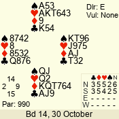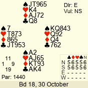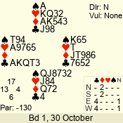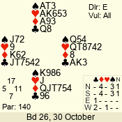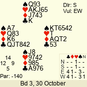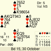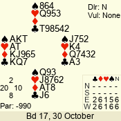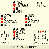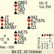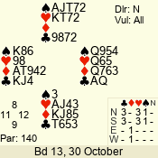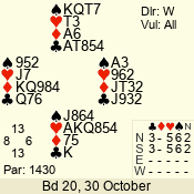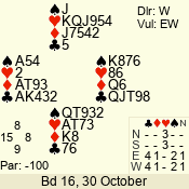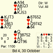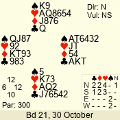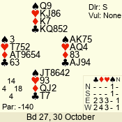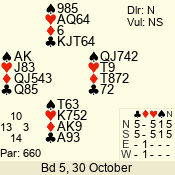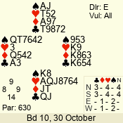 | 3 NT | S | +1 | 630 | 3 | 05 - 04 | 2 | 5 |