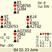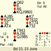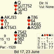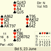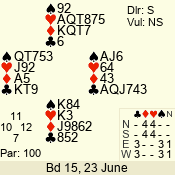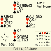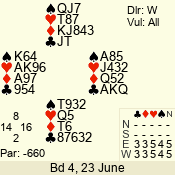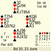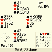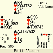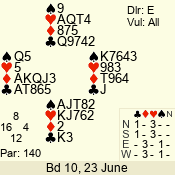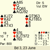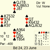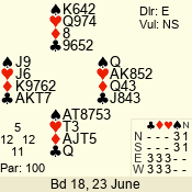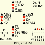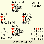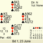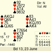 | 3 NT | W | +1 | -630 | 3 | 02 - 02 | 1 | 2 |