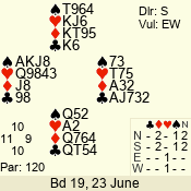 | 3 NT | W | +2 | -460 | 2 | 05 - 09 | 6 | 5 |