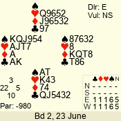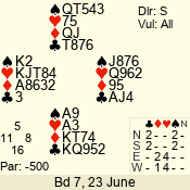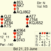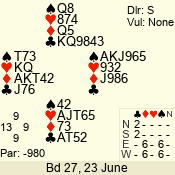 | 3 NT | E | +1 | -430 | 9 | 07 - 03 | 5 | 7 |