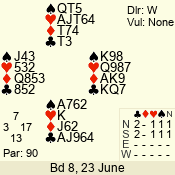 | 3 NT | W | +1 | -630 | 3 | 08 - 05 | 4 | 8 |
