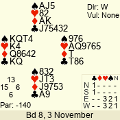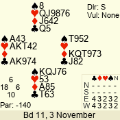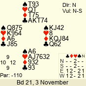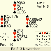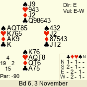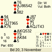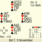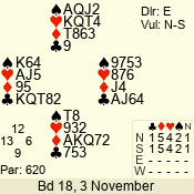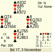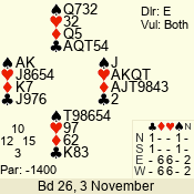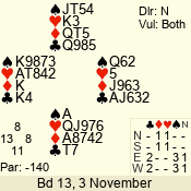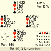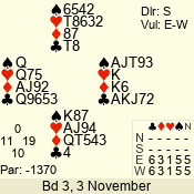 | 3 NT | W | +1 | -430 | 9 | 07 - 04 | 4 | 7 |