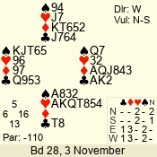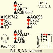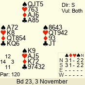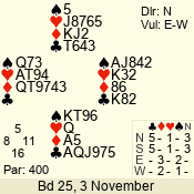 | 3 NT | S | +2 | 460 | 3 | 02 - 03 | 7 | 2 |