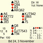 | 3 NT | S | +3 | 490 | 3 | 06 - 04 | 3 | 6 |