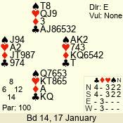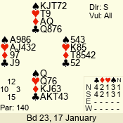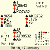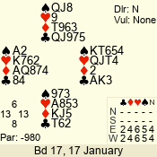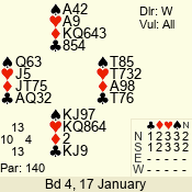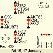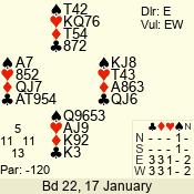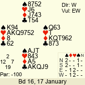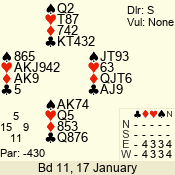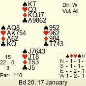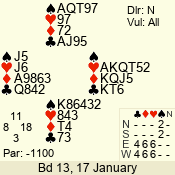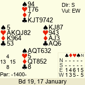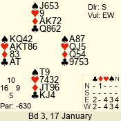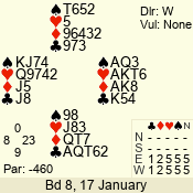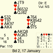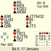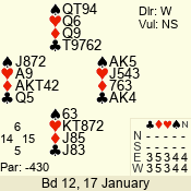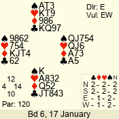 | 3 NT | W | +1 | -430 | 6 | 02 - 02 | 1 | 2 |