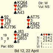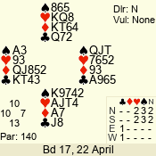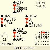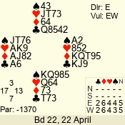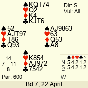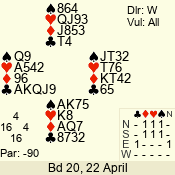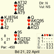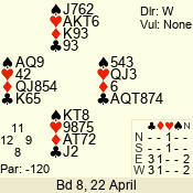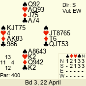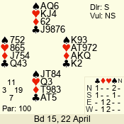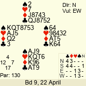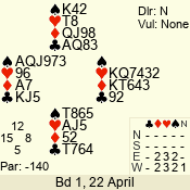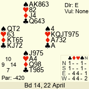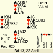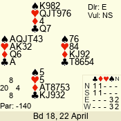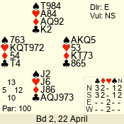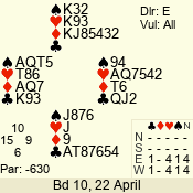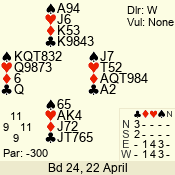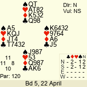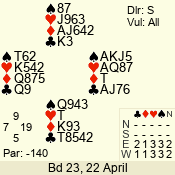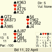 | 3 NT | S | +1 | 430 | Q | 04 - 06 | 5 | 4 |