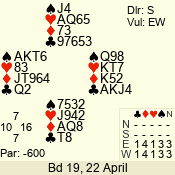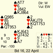 | 3 NT | W | +1 | -430 | 9 | 03 - 01 | 3 | 3 |