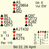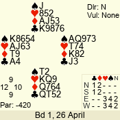 | Con | Dc | Res | Score | Ld | Pairs | Rd | Tbl | 4  | S | = | 420 | 2 | 01 - 04 | 4 | 1 |