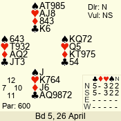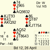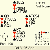 | 3 NT | W | +1 | -430 | 8 | 03 - 03 | 1 | 3 |