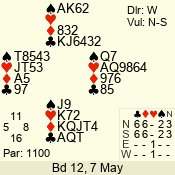 | 3 NT | W | +1 | -430 | 7 | 02 - 01 | 2 | 2 |