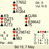 | 3 NT | W | +2 | -460 | K | 09 - 06 | 4 | 9 |