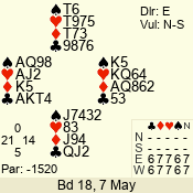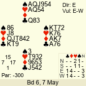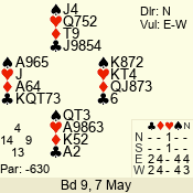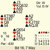 | 3 NT | E | +1 | -630 | 2 | 04 - 04 | 11 | 4 |