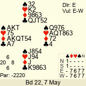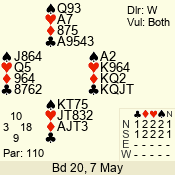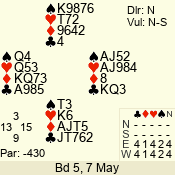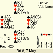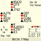 | 3 NT | W | +1 | -430 | T | 08 - 04 | 5 | 8 |