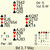 | 3 NT | W | +4 | -720 | 2 | 03 - 05 | 9 | 3 |
