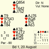 Con | Dc | Res | Score | Ld | Pairs | Rd | Tbl | 1 NT | W | = | -90 | 7 | 05 - 02 | 4 | 5 |