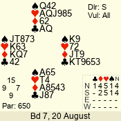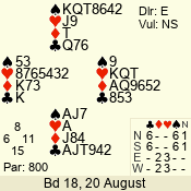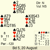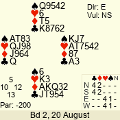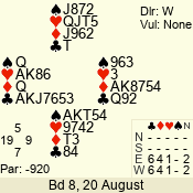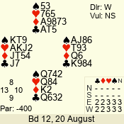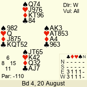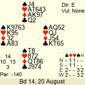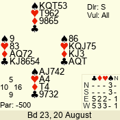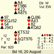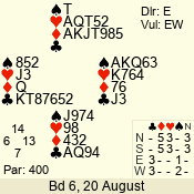 Con | Dc | Res | Score | Ld | Pairs | Rd | Tbl | 4  | S | = | 420 | J | 06 - 02 | 5 | 6 |