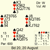 Con | Dc | Res | Score | Ld | Pairs | Rd | Tbl | 5  | S | = | 600 | A | 05 - 02 | 4 | 5 |
