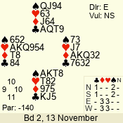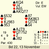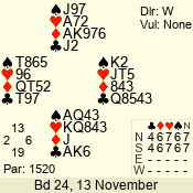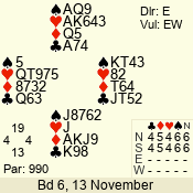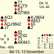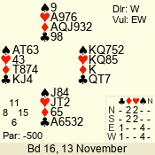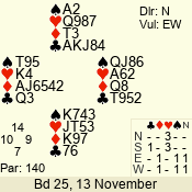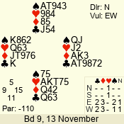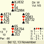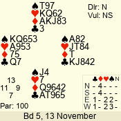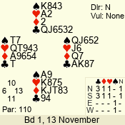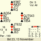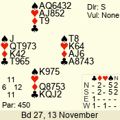 | 3 NT | W | +1 | -430 | 5 | 07 - 01 | 7 | 7 |