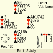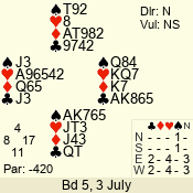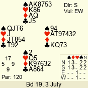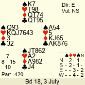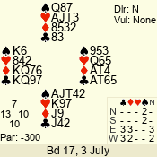 | 3 NT | N | +1 | 430 | 2 | 17 - 11 | 7 | 17 |