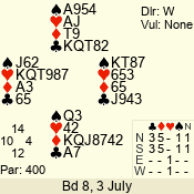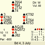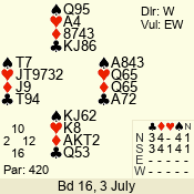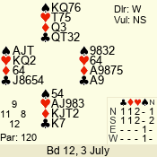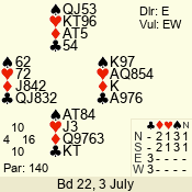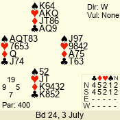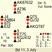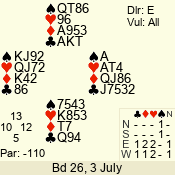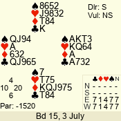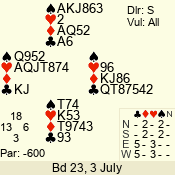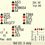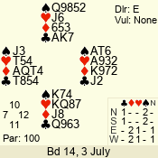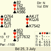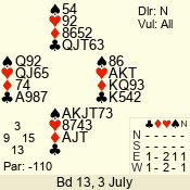 | 3 NT | W | +2 | -660 | 5 | 13 - 02 | 12 | 13 |