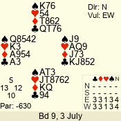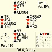 | 3 NT | W | +1 | -630 | 6 | 09 - 11 | 17 | 9 |