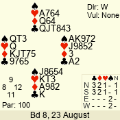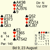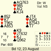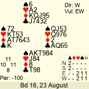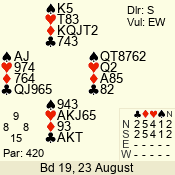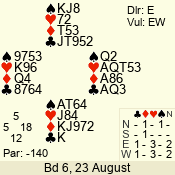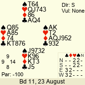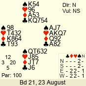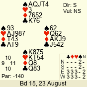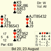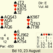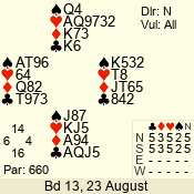 | 3 NT | S | +1 | 630 | 6 | 05 - 04 | 2 | 5 |