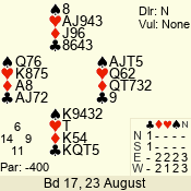 | 3 NT | E | +1 | -430 | 6 | 02 - 06 | 4 | 2 |