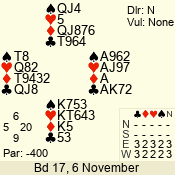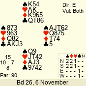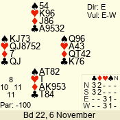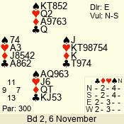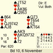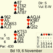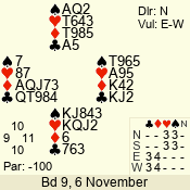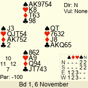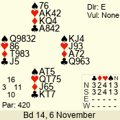 | 3 NT | E | +1 | -630 | 3 | 09 - 06 | 4 | 7 |