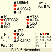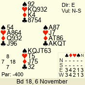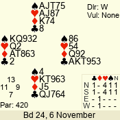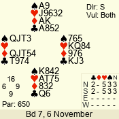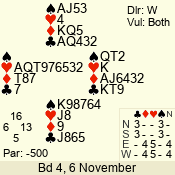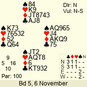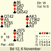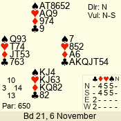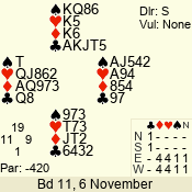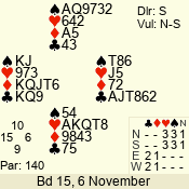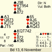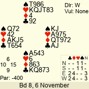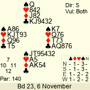 | 3 NT | S | +3 | 490 | 2 | 06 - 11 | 12 | 5 |
