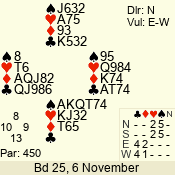 | 3 NT | E | +1 | -430 | 7 | 05 - 09 | 12 | 6 |