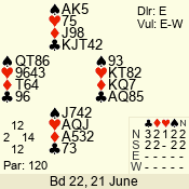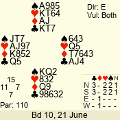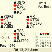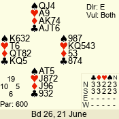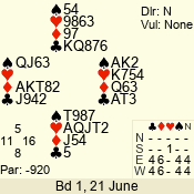 | 3 NT | E | +1 | -630 | J | 09 - 06 | 4 | 7 |