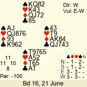 | 2 NT | W | +2 | -180 | 2 | 08 - 13 | 1 | 5 |
