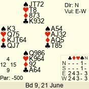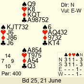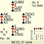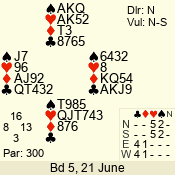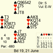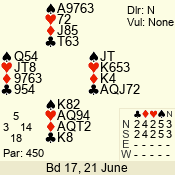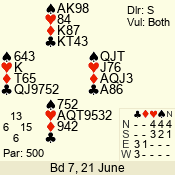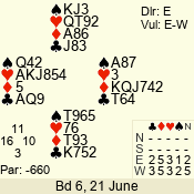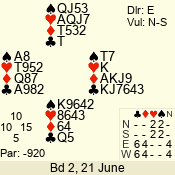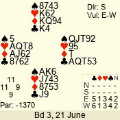 | 3 NT | S | +2 | 660 | 4 | 05 - 02 | 13 | 7 |