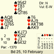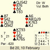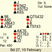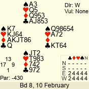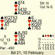 | 3 NT | W | +1 | -430 | 2 | 05 - 03 | 3 | 5 |