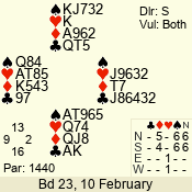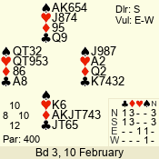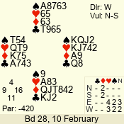 | 3 NT | W | +2 | -660 | K | 03 - 03 | 1 | 3 |