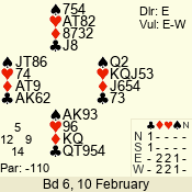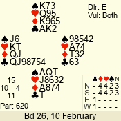 | 3 NT | E | +1 | -630 | 3 | 06 - 05 | 2 | 6 |