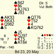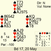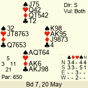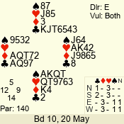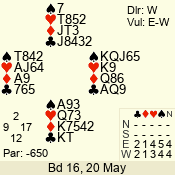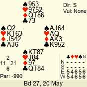 | 3 NT | W | +4 | -520 | 9 | 10 - 09 | 2 | 10 |