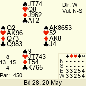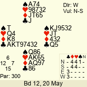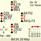 | 3 NT | W | +1 | -430 | 6 | 06 - 12 | 9 | 6 |