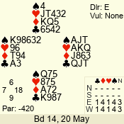 | Con | Dc | Res | Score | Ld | Pairs | Rd | Tbl | 4  | E | = | -420 | J | 14 - 01 | 14 | 14 |