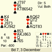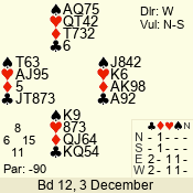 | 3 NT | E | +2 | -660 | A | 07 - 11 | 9 | 7 |