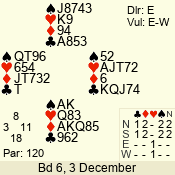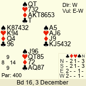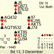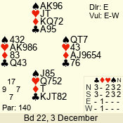 | 3 NT | E | +1 | -430 | 3 | 02 - 07 | 8 | 2 |